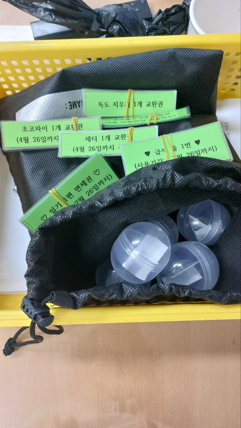 1반 선생님은 아이들의 질서 지도를 위해 전시실로 따라가셨죠. 한 30분이 흐르자 다 푼 조들이 나옵니다. 그래서 저는 뽑기 기회를 제공합니다. 1주일 동안 열심히 준비했는데 선물이 약했나 봅니다. 생각보다 반응이 미지근합니다.