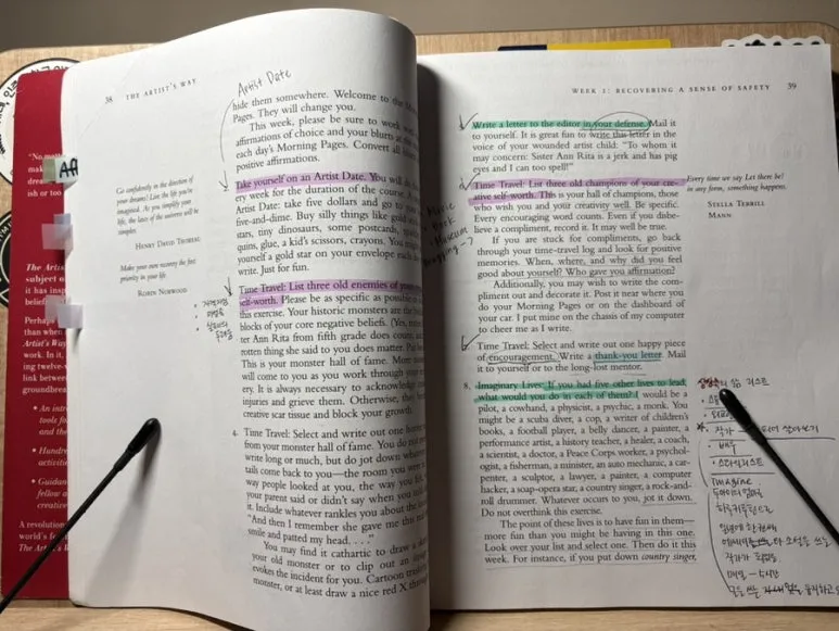 아티스트 웨이 워크숍을 함께 하면서 나뿐만 아니라 참여한 사람들 모두 나를 돌아보는 시간을 갖고 앞으로 나아가는 계기가 되길 기대했지만, 그것이 그리 쉽지 않았다. 그 기대가 왜 쉽지 않았는지는, 이 책 이야기를 하다 보면 자연스럽게 드러날 것이다.