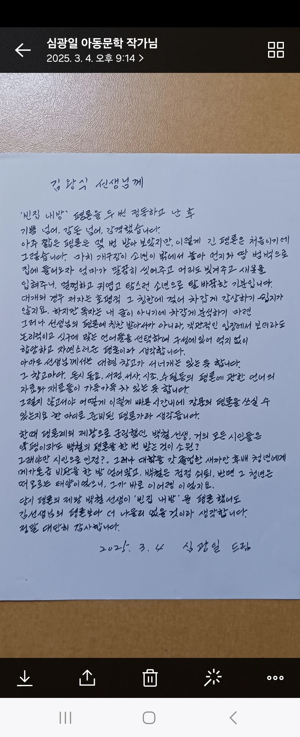 선생님, 손수 육필로 써서 보내주신 정성 가득한 편지를 받고 감동이 밀려왔습니다.