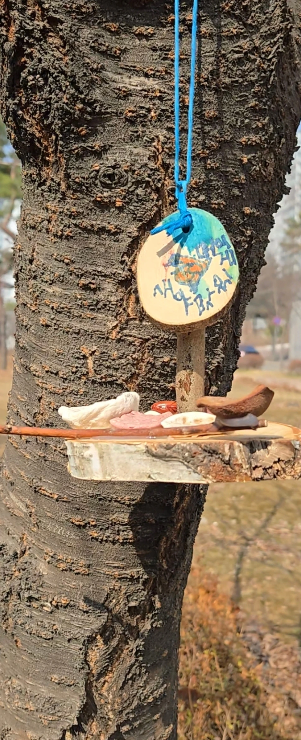 그 옆에 작은 손길이 분주하게 움직인다. 어린아이가 콩과 잡곡을 가지런히 놓고 있다. 까치며 참새, 박새 같은 새들이 와서 배를 채울 수 있도록 조심스레 곡식을 올려놓는 모습이 정성스럽다. 그 손길 뒤에는 어머니의 사랑이 함께한다. “배고픈 새들이 먹을 수 있도록 놓아주는 거야.” 어머니의 다정한 목소리가 들리는 듯하다. 차가운 겨울을 지나온 작은 생명들에게 따뜻한 손길을 내미는 아이, 그리고 그런 아이를 보며 흐뭇하게 미소 짓는 어머니. 사랑은 이렇게 자연스럽게 이어진다.