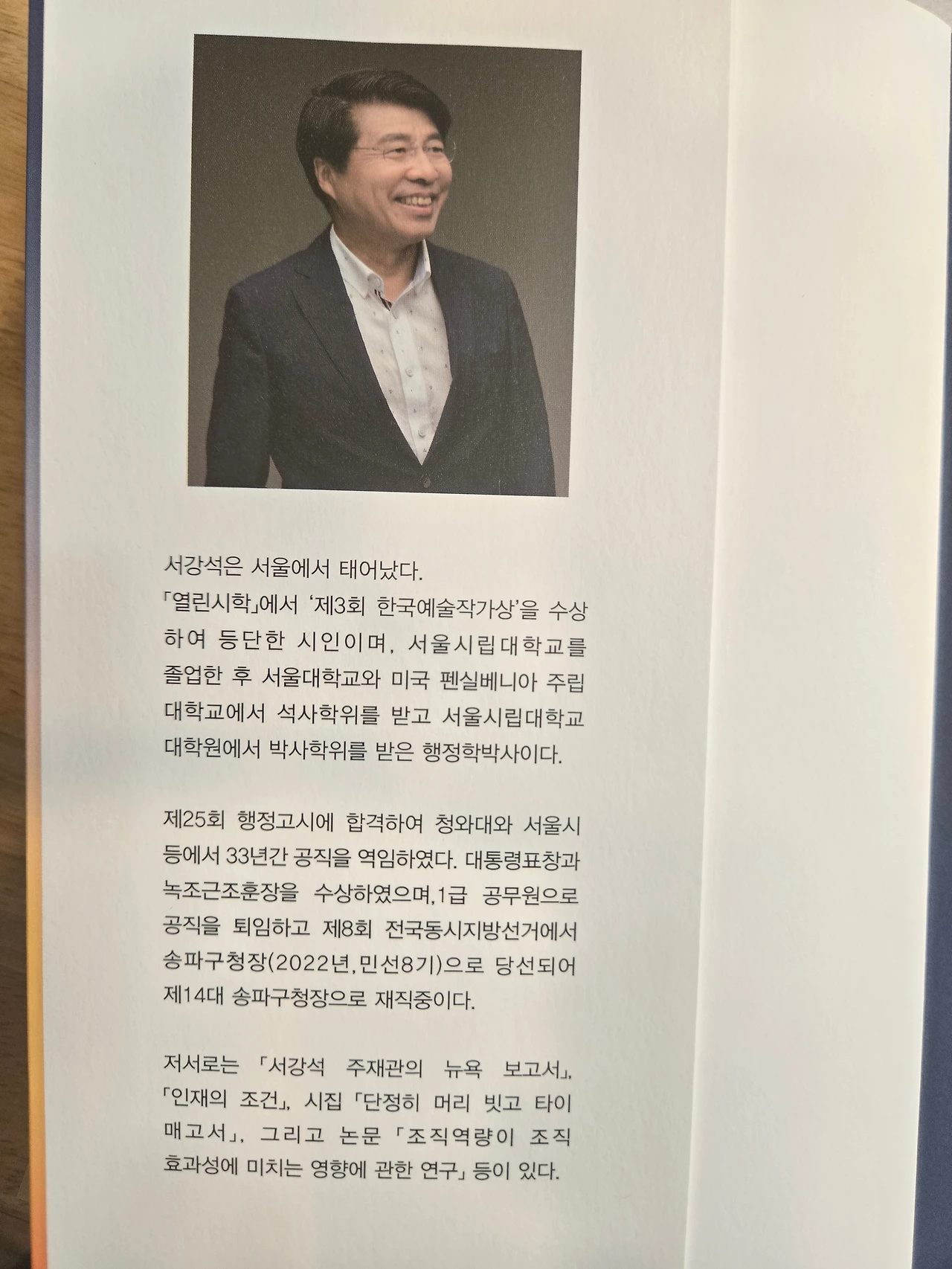 대통령표창과 녹조근조훈장을 수상하였으며, 1급 공무원으로 공직을 퇴임하고 제8회 전국동시지방선거에서 송파구청장(2022년, 민선 8기)으로 당선되어 제14대 송파구청장으로 재직 중이다.