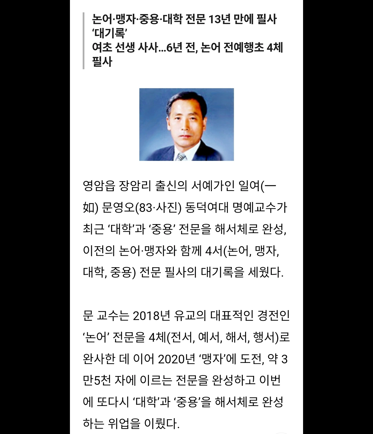 문영오 교수님께서 걸어오신 길은 ‘흙을 밟고, 바람 속에 서고, 한 줌의 여유를 아는 길’이었습니다. 그는 말했죠. “글은 지식이 아니라, 삶의 나뭇가지 위에 맺힌 이슬과 같다”라고. 그 비유처럼, 교수님의 문장은 맑고 투명하게 우리에게 다가왔습니다. 글자 하나에 우리의 땀과 슬픔, 기쁨이 녹아들었고, 우리는 서서히 그 미학의 언저리에 다가갔습니다.