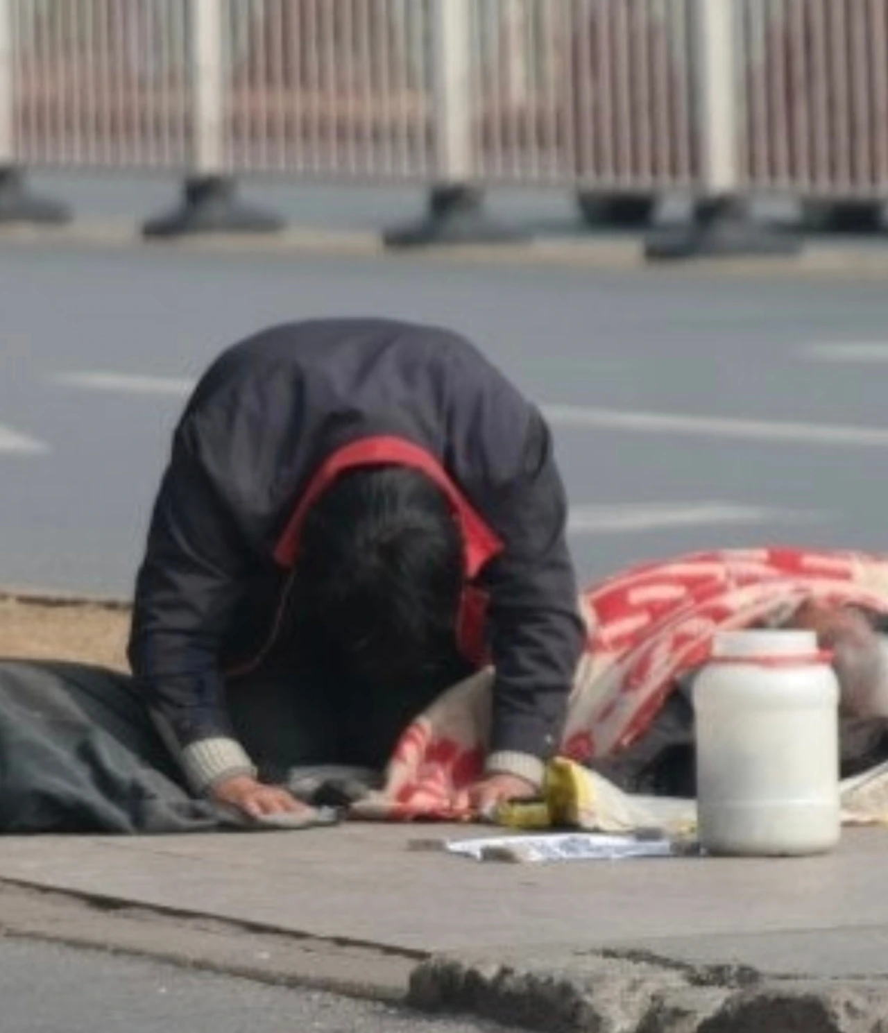한 노인이 시야를 붙잡았다. 그는 다리가 없어 반신불수였다.