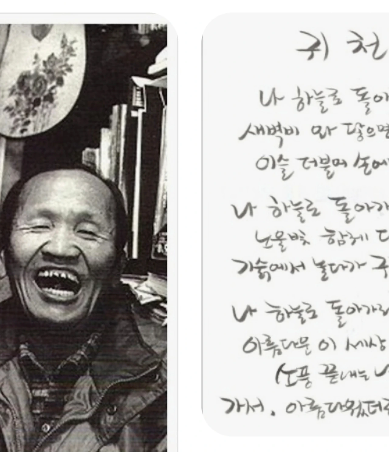“그 말이야말로 이 시의 진심이야. 천상병 시인은 병을 앓고, 가난했고, 조롱받기도 했지. 하지만 그럼에도 불구하고 ‘삶은 아름다웠다’고 말할 수 있었어. 왜냐하면 그는 고통보다 더 큰 것을 마음에 품었기 때문이지. 그건 바로 사랑, 연민, 그리고 시였어.”