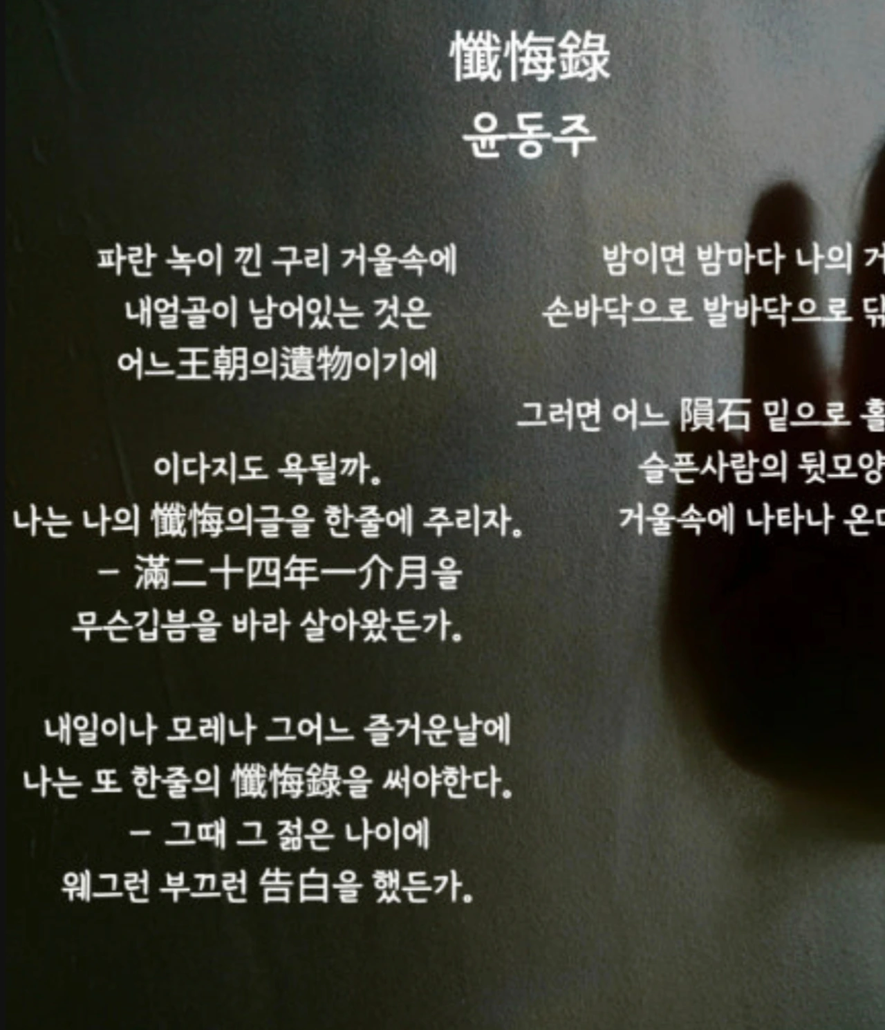 “스승님, 윤동주 시인의 <참회록>이요… 읽었는데요… 솔직히 말씀드리면…”