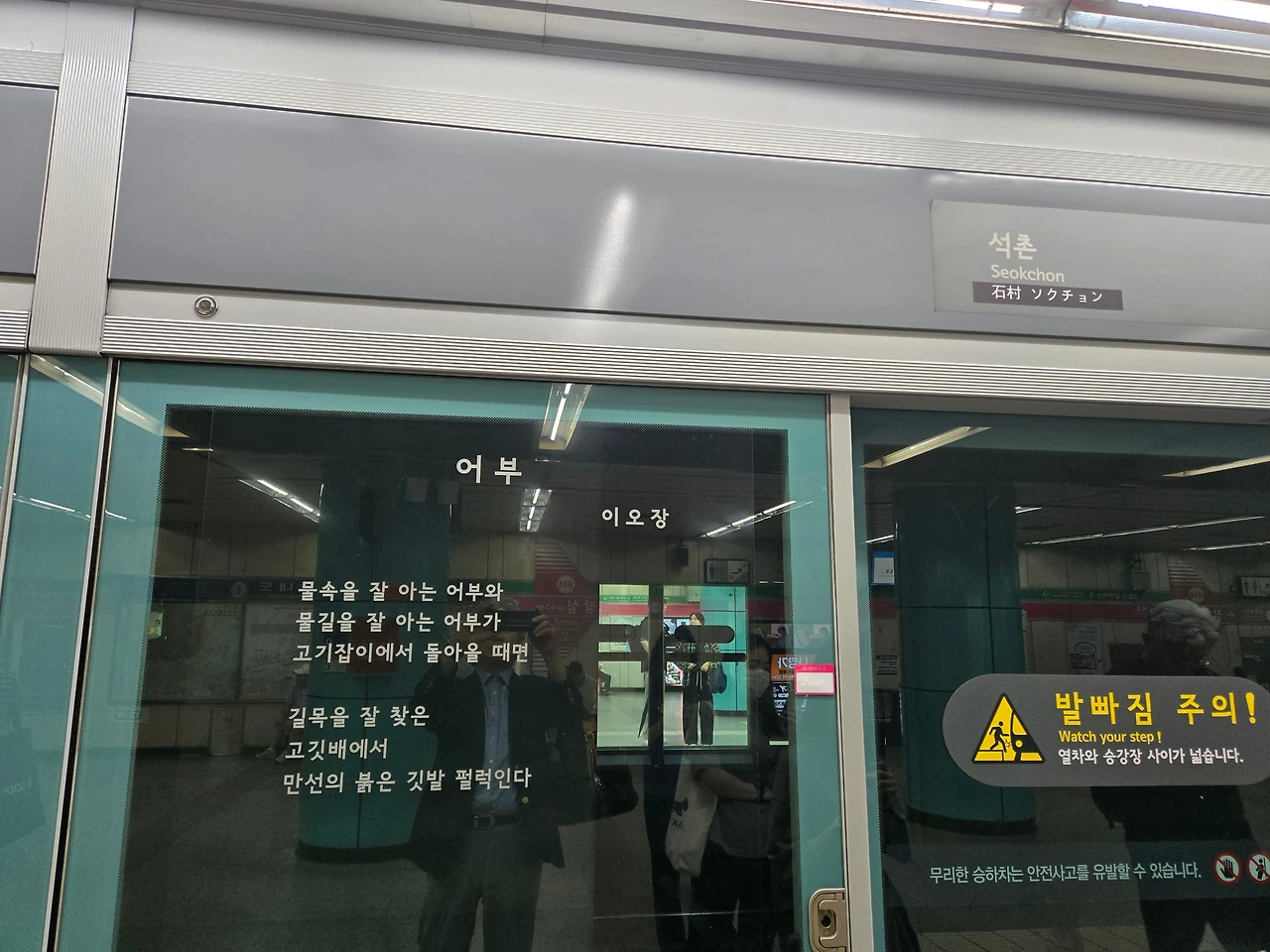 □ 지하철역 문에 게재된 이오장시인의 '어부'
