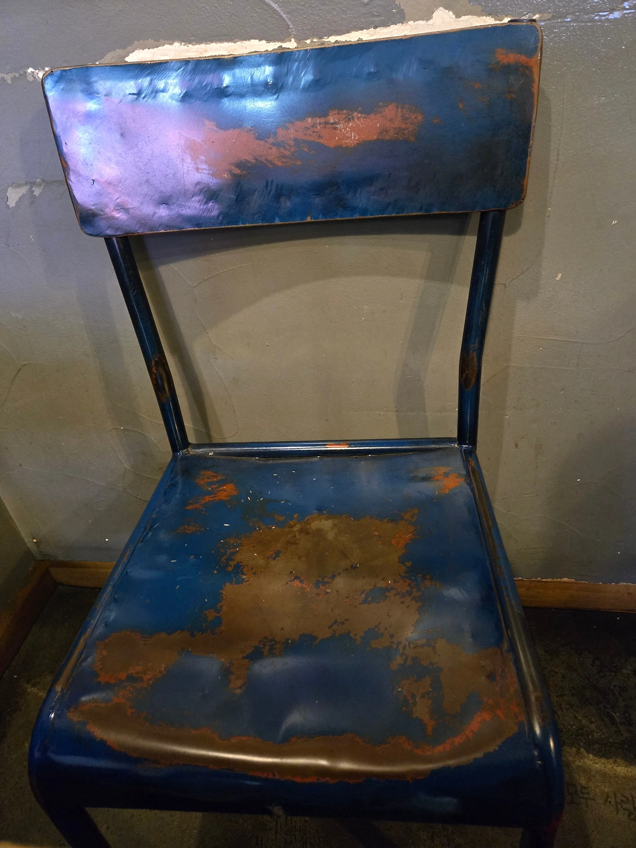 가장 먼저 눈에 들어온 것은 빛바랜 철제 의자였다.