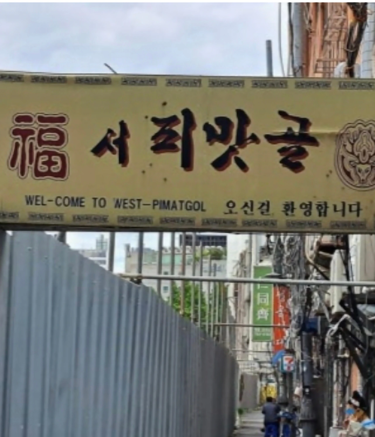 간판의 붓글씨가 비스듬히 기울고