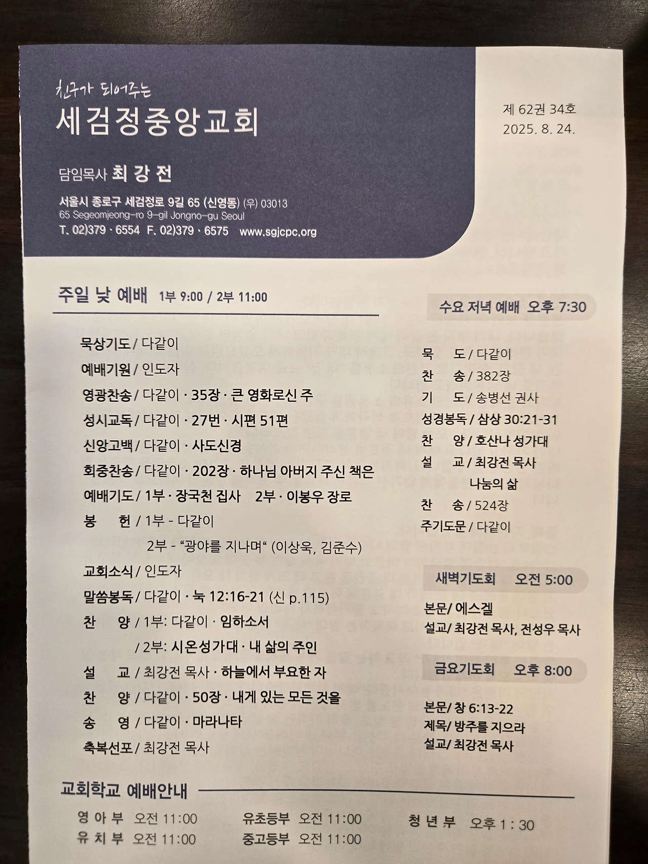 주일 예배에서 선포된 세검정중앙교회 최강전 담임목사님의 말씀은 제 마음 깊은 곳을 두드렸습니다. 본문에 등장한 부자는 세상적 기준으로 보면 지혜롭고 성실하며, 미래를 준비한 능력 있는 사람이었습니다. 그러나 하나님께서는 그를 향해 ‘어리석은 자’라 말씀하셨습니다.