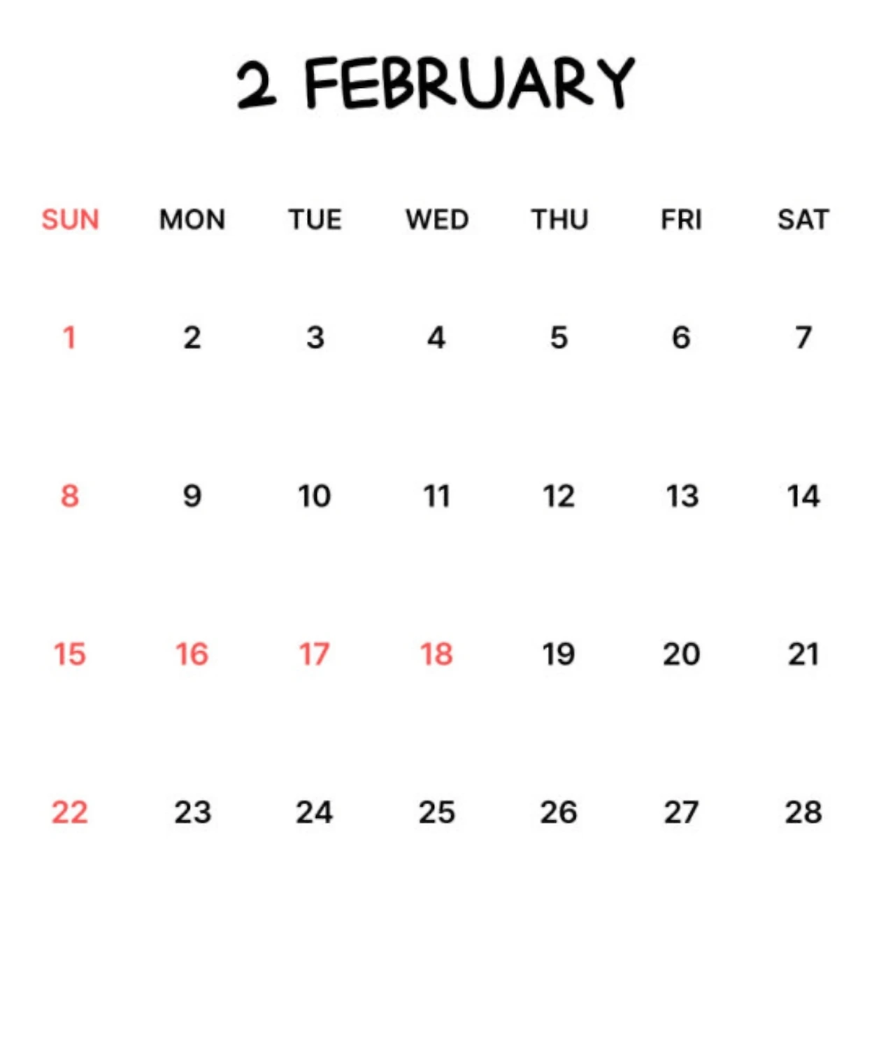 올해 2월 달력은