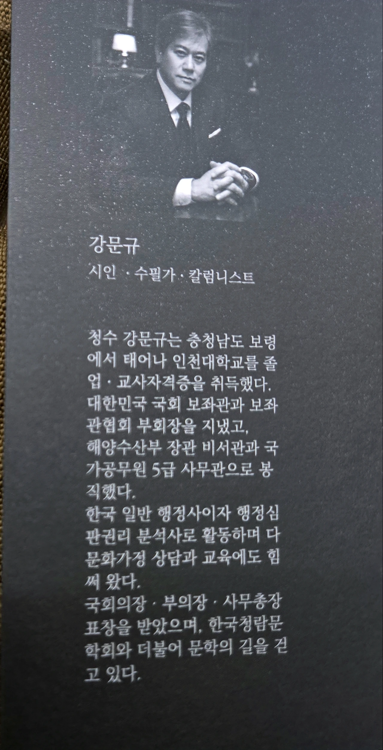 강문규의 시는 한 사람의 내면적 노정이다. 고요를 세우고, 살림을 견디고, 그리움을 통과하며, 사람을 이해하고, 마침내 비움으로 나아가는 과정. 이 과정은 개인적인 체험을 넘어, 보편적인 삶의 구조로 확장된다. 그의 시는 독자를 설득하지 않는다. 대신 조용히 동행한다.