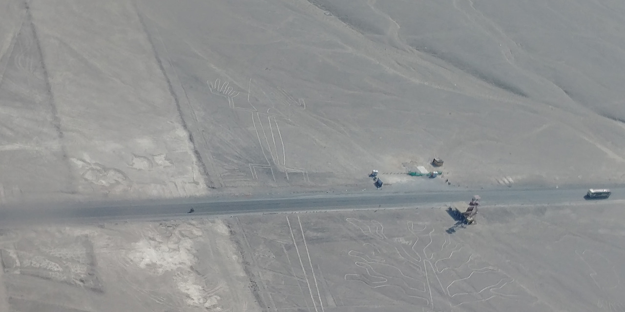 하늘을 나는 중에 그 나스카라인 지역 한가운데 고속도로가 놓여있는 것을 보다. 최초에 이 그림을 그렸을 당시의 기술도 놀랍지만, 그 유물 깊이 들어와 그림까지 갈라놓는 현대의 이 폭력적인 라인도 못지않게 놀라울 뿐이다.