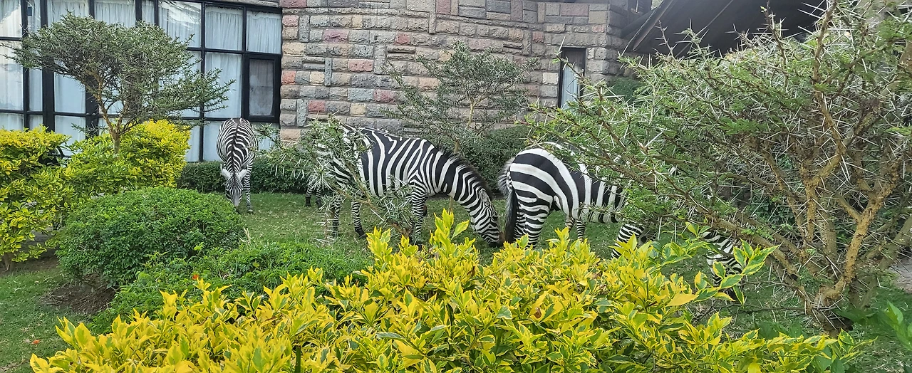 저기 앞에 호수가 펼쳐지고 정원 겸 공원인 이곳에는 얼룩말과 이런저런 동물들이 거짓말처럼 바로 앞에서 걸어 다니고 있다.