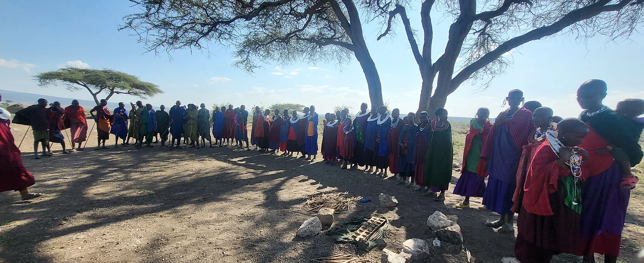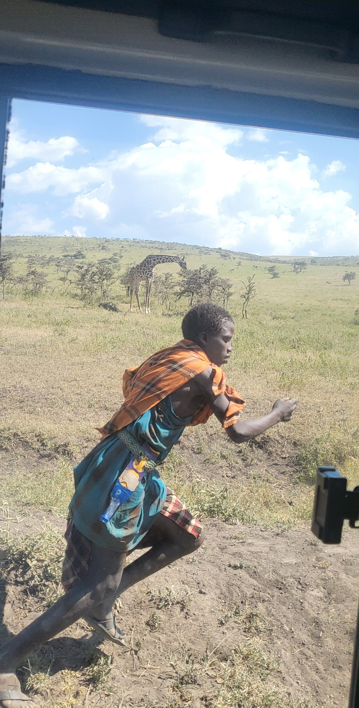 세렝게티로 오기 전 '응고롱고로 분화구'를 지나는데, 세렝게티에서 이 지역으로 내몰려 사는 마사이족 마을을 방문하다. 커다란 나무 아래 관광객을 환영하기 위해 마을 주민들이 모인다. 남자들은 나무지팡이를 들고 위로 뛰어오르는 그들의 전통춤을 추고 여자들은 그에 맞춰 각기 소리를 내어 노래를 부른다. 무슨 의미인지는 모르겠으나 열심히 부르는 것도 같고 형식적인 것도 같다. 방문객도 함께 어울리는데 같이 열심히 그들을 따라 하니, 옆에 있던 젊은이가 웃으며 '땡큐' 인사를 한다. 그들의 전통의식을 같이 해주는 것이 진심 좋았나 보다. 다음 순서는 그들의 가옥을 둘러보는 시간. 두 사람이 한 가정을 방문하도록 배치가 된다. 우리를 자기 집으로 안내한 사람은 '미두(큰 비라는 의미라고)'라는 세 아이의 아빠, 다른 사람들과 달리 레게머리를 한 것이 특이하다.