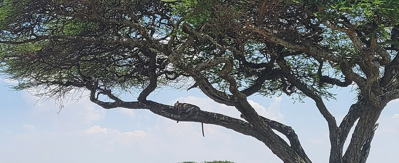 레오파드, 표범이라니. 사파리운전자가 나무를 가리키는데 처음엔 못 알아봤다. 자세히 보니 나무줄기에 누워 꼬랑지를 밑으로 내린 채 꿀잠을 자고 있다. 표범이 그렇게 앙증맞고 세상 편한 모습으로 늘어져 자고 있다는 게 상상이 안 된다. 아기 표범인가 보다.