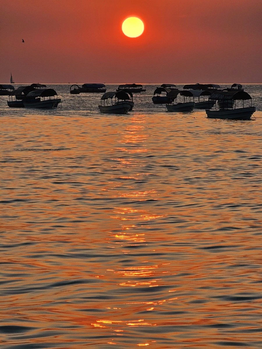 저녁에 해변으로 나와 노을을 보다. 인도양의 해가 지고 있다. 배가 떠 있고 라마단의 초승달이 떠 있는 곳에서 해가 떨어진다. 아름답다. 일행 중 한 분이 올려주신 사진이 예술이다. 라이언킹에 나오는 색감이 바로 이것이었다. 마사이족이 두른 담요나 옷도 이런 색이었다. 탄자니아 사람들이 입던 옷도 이런 색이었다.