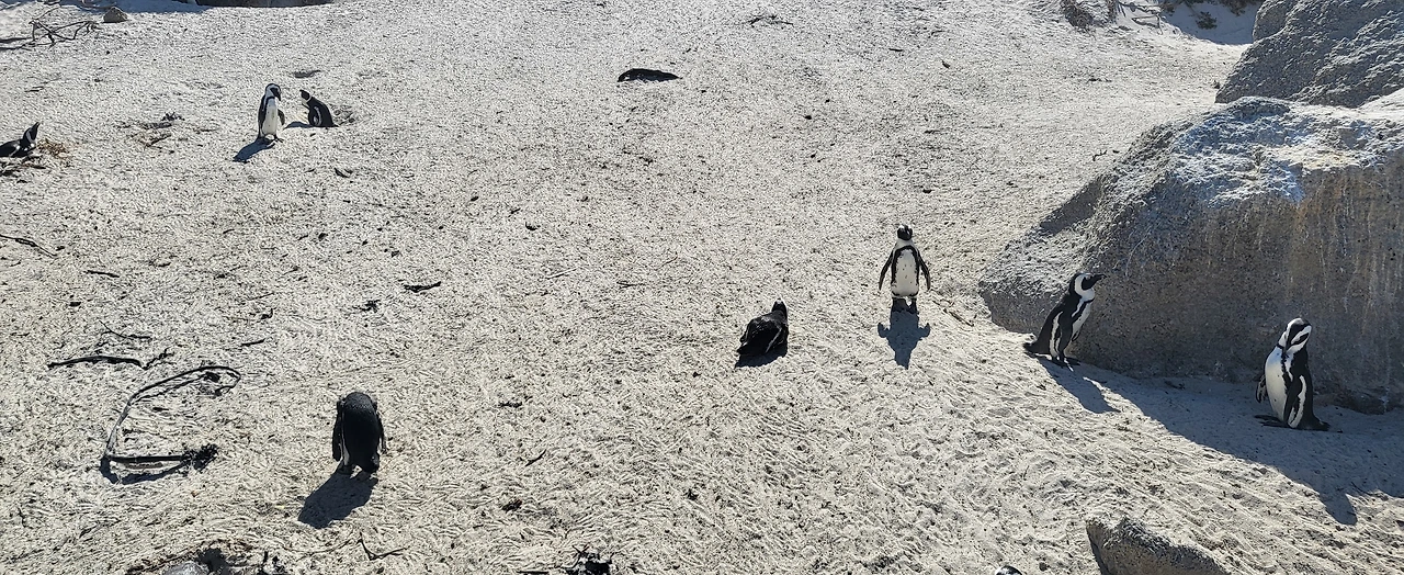 모래 위에서 움직이지 않고 두 발로 서 있는 펭귄은 코미디를 하고 있나? 멈춰 있는 것이 '얼음 땡' 놀이를 하고 있는 듯, 그 모습이 정말 귀엽다. 얘들은 새과인가? 닭과인가? 뒤뚱거리며 걷는 모습을 실제로 보다니 내 눈이 다 신기하다.