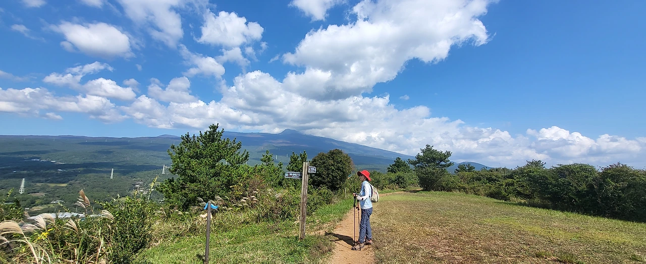 바람이 그렇게 시원하게 불 수 있나. 낮에 걸을 때 기온만 좀 낮아주면 금상첨화련만, 제주는 아직 늦여름이다. 너무 뜨겁고 덥다. 먼저 막 내려오다 길을 잃다. 리본이 없구나. 다시 뒤로! 리본과 올레 화살표시가 나무 사이로 숨어있네. 이런.