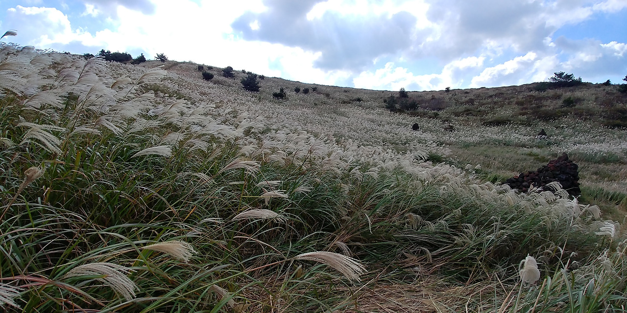 정상에 오르면 보이는 깊숙한 분화구, 그 주변을 둘러싼 완만한 길하며, 들꽃들과 흐드러진 억새, 한눈에 좌악 펴진 제주의 몸! 입이 다물어지지 않는다. 처음 이런 풍경을 보았을 때는 눈물이 날 뻔했다. 이렇게 아름다운 풍경이 있었는데 난 그동안 어딜 다닌 거야?