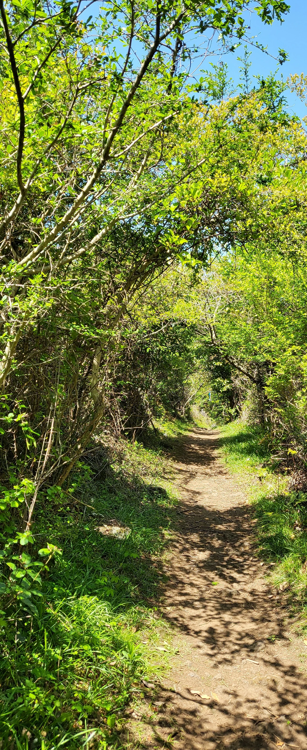 4월 봄에 걷는 숲길이, 나무의 연초록이 그렇게 예쁠 수가 없다. 나뭇잎 하나하나가 살아서 반짝인다. 새들의 목청도 다양하구나. 나무들이 엉켜 숲 터널을 만든다. 동굴로 들어가는 듯, 빨려들 듯한 길이 이어진다.
