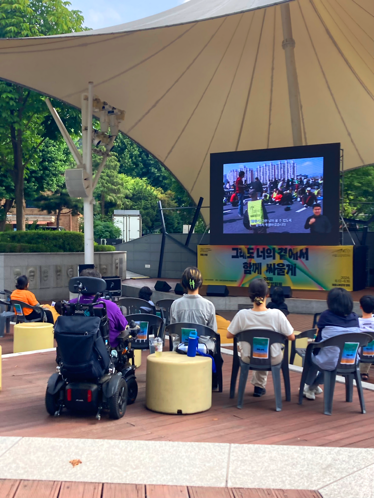 이동이 어려운 사람들에게 호의적이지 않은 공간이 있습니다. 대표적으로 계단이 있겠죠. 특히 휠체어 이용자는 계단을 의자처럼 사용할 수가 없습니다. 머무르지 못하는 건 물론이고 구석에 마련해 놓은 경사로를 지나가야만 합니다.