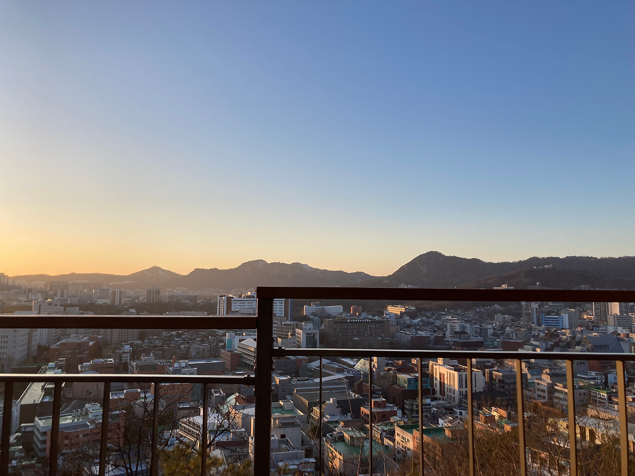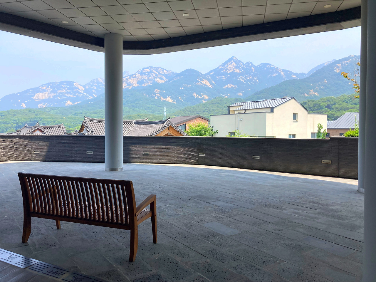 멀리 내다보는 풍경은 해방감을 줍니다. 사방을 막고 인테리어로 분위기를 조성한 공간도 나름의 해방감을 주는데, 그와는 조금 다릅니다. 다른 세상을 꾸며서 그 안으로 초대하는 게 아니라, 일상을 있는 그대로 펼쳐 보여주기 때문이죠. 산, 강, 길, 건물이 얽혀 있는 그림에서 사람들이 살아가는 이야기를 찾게 된다는 점도 전경의 매력입니다.
