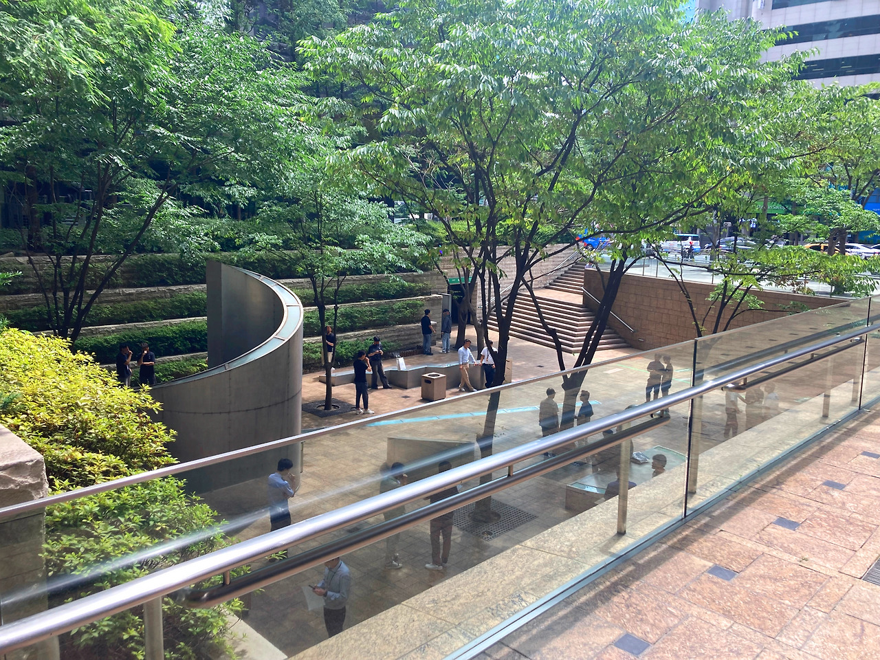 지하철역사 내부 정원입니다. 이동을 위한 통로이면서 휴식도 가능한 쉼터입니다. 이곳 외에도, 앉아서 쉴 수 있는 공간이 예전보다 많은 역에 생긴 것 같습니다.