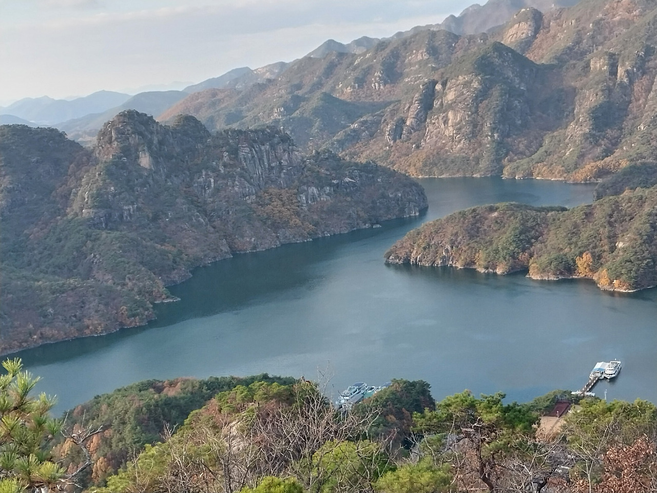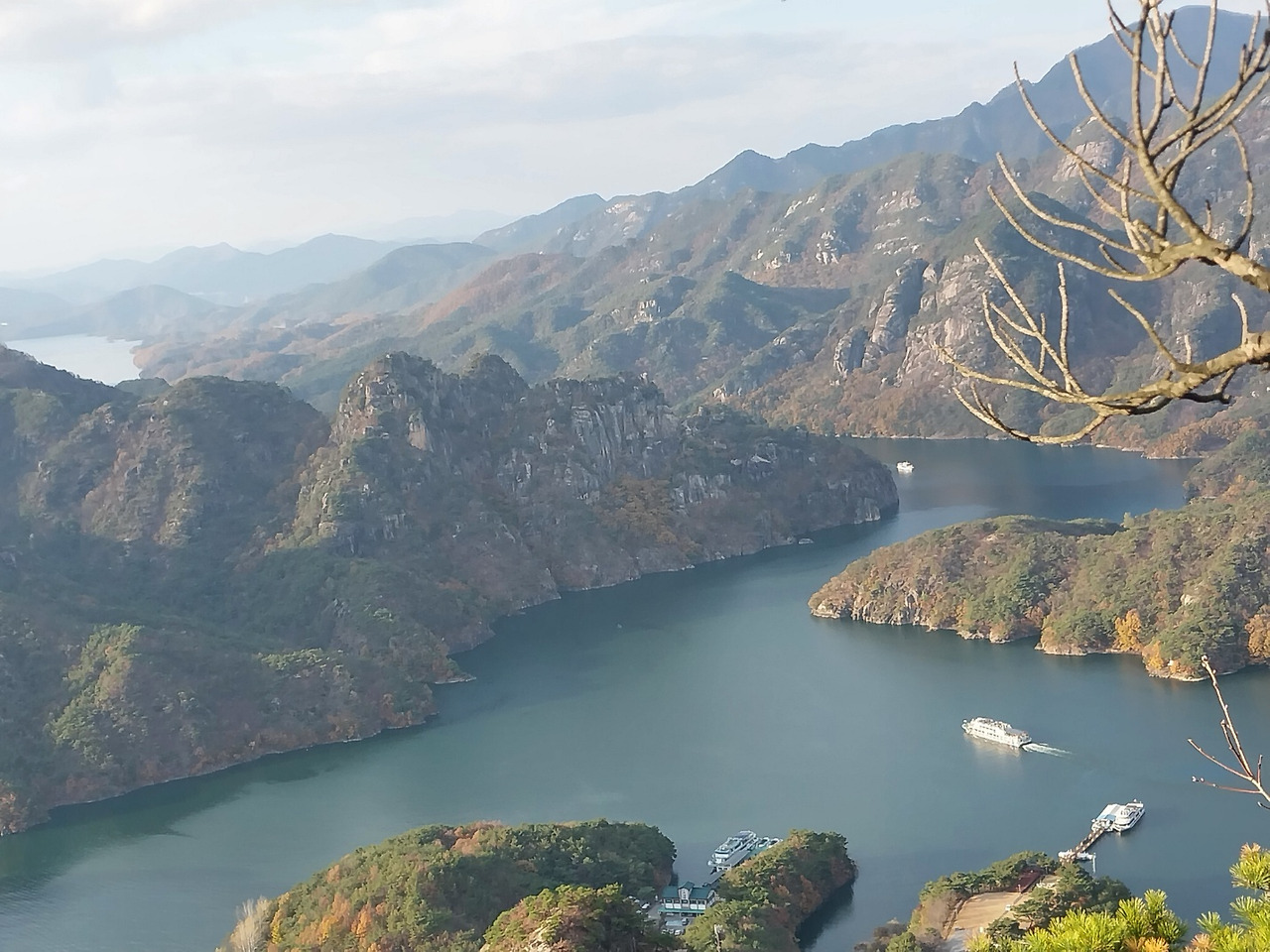 탐방로 입구에서 십 분을 올라가자 탁 트인 전망으로 청풍호가 내려다보이기 시작했다. 장회나루와 구담봉이 보이고 오를수록 장회나루 너머 구담봉에 가린 청풍호가 점점 드러났다. 몇 걸음 옮기다가 돌아보고 또 돌아보고 감탄하느라 그 길은 더디게 오를 수밖에 없었다.