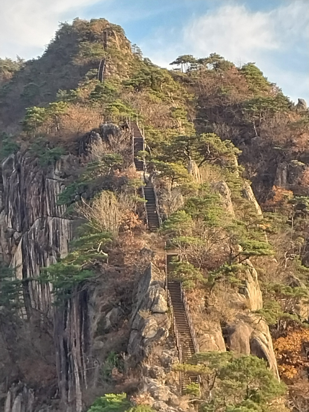 가다 보면 저 위에 가파르고 좁은 구간이 있는데 정말 무서워요. 남자든 여자든 상관없이. 거기까지 저랑 같이 가요. 거기서 내려오시면 될 것 같아요. 저는 제비봉까지 갔다 오려고 해요.