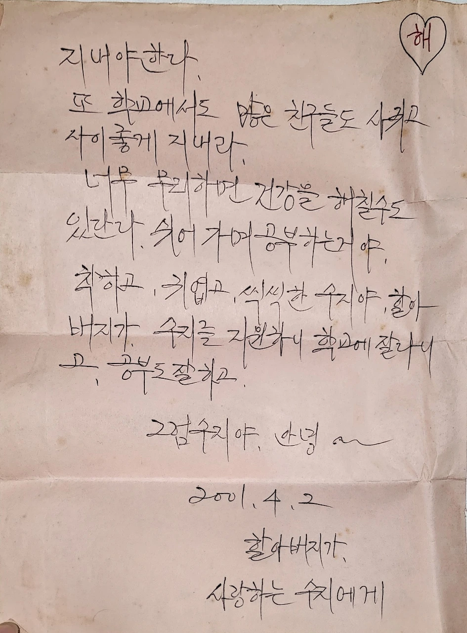 2001.4.2 할아버지가, 사랑하는 수지에게