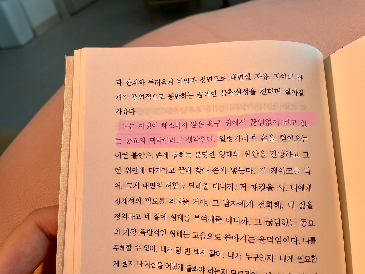 그런가 반면 글의 덜미가 잡히는 책이 있다. 최근에 읽은 책중에는 캐럴나인 냅의 [욕구들]이 있다. 원래 이 책이 유명하다는 것을 다음 책 [명랑한 은둔자]를 읽으면서 알게 됐다. [명랑한 은둔자]를 오랜 시간이 걸쳐 읽고 난 뒤에 도서관에서 [욕구들]을 빌렸고, 마찬가지로 반납기한 내에 읽기엔 시간이 부족했다. 결국 반정도 읽은 책을 반납했고, 다시 빌려오진 않았다. 책을 읽는 것이 꼭 오프로드를 걷는 것처럼 힘이 든다. 방지턱과는 다르다. 글이 내 덜미를 잡고 놔주지 않는다고 해야 하나. 그렇게 잡힌 몇 구절을 나누자면 이러하다.
