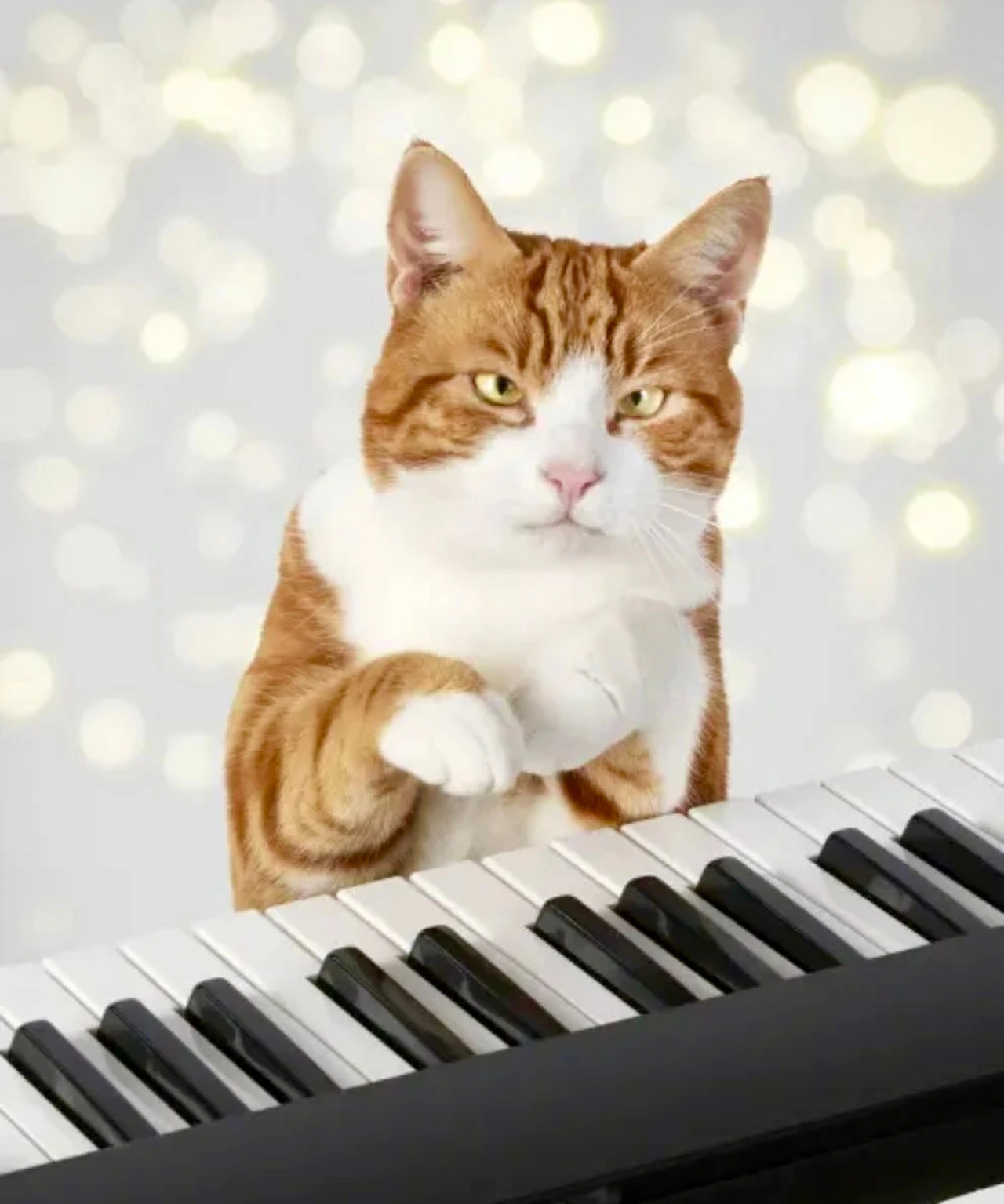 피아노 위에 우아한 고양이가