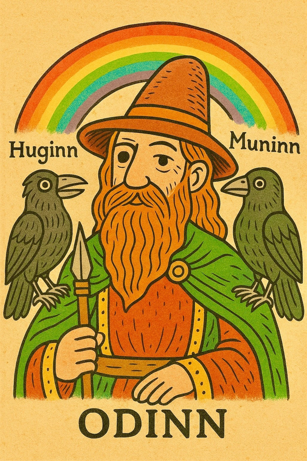 { 오딘과 까마귀 후긴(생각)·무닌(기억)