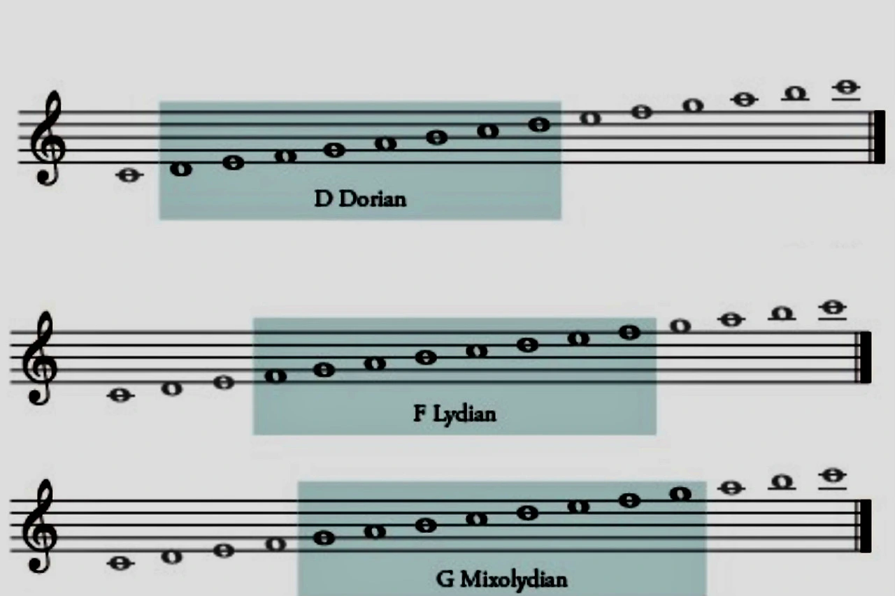 서양 음악의 전통적인 교회 선법(Church Modes) 중 일부예요. 민속 선율 속에서 자주 발견되지요.