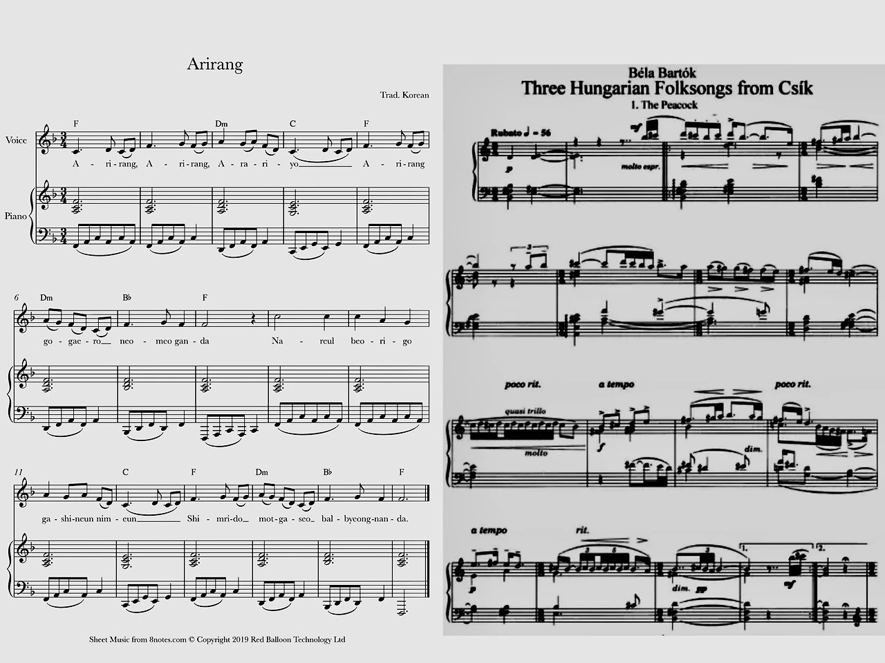 헝가리 농민들의 선율을 채보해 예술로 재구성한 작품이다.