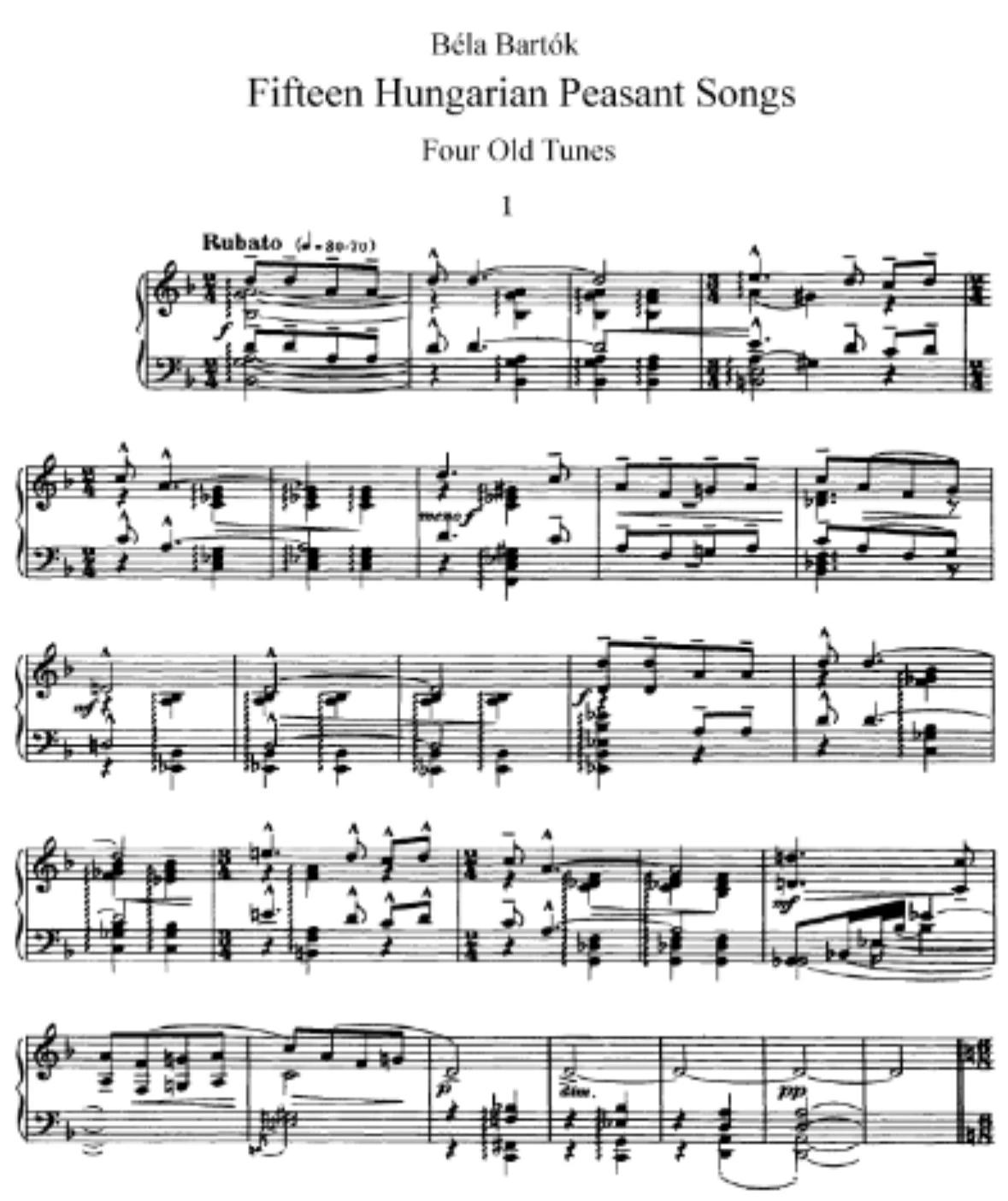 바르톡 《15 Hungarian Peasant Songs, Sz.71》 악보.