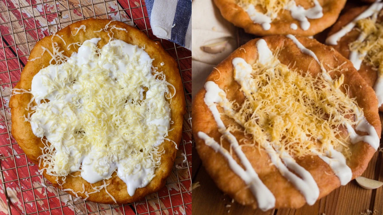 마늘 향 가득 갓 튀겨낸 도우 위에 치즈와 사워 크림이 흘러내리는, 헝가리의 길거리 소울푸드 랑고시(Lángos)