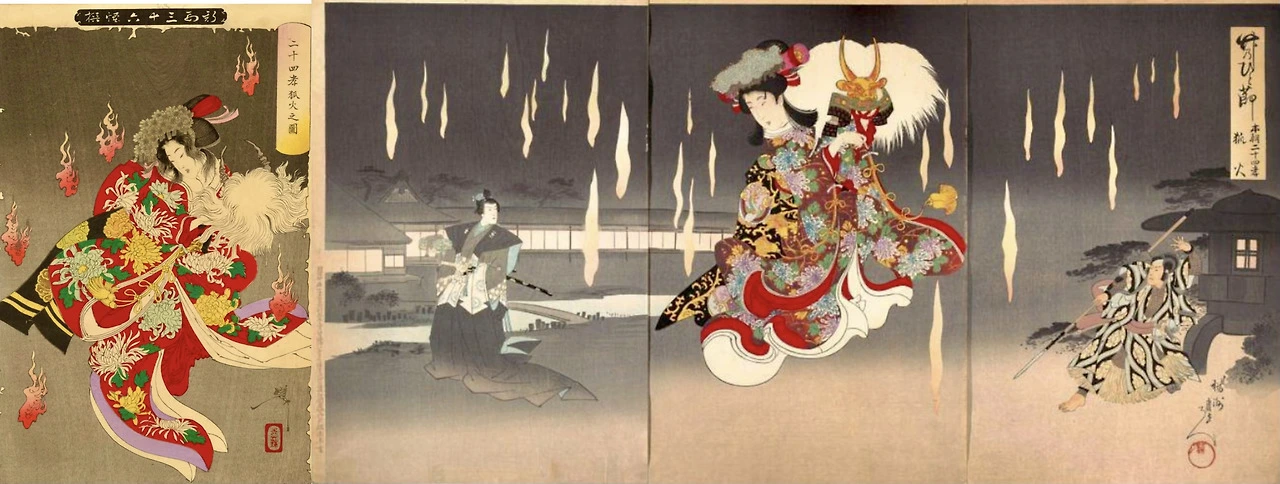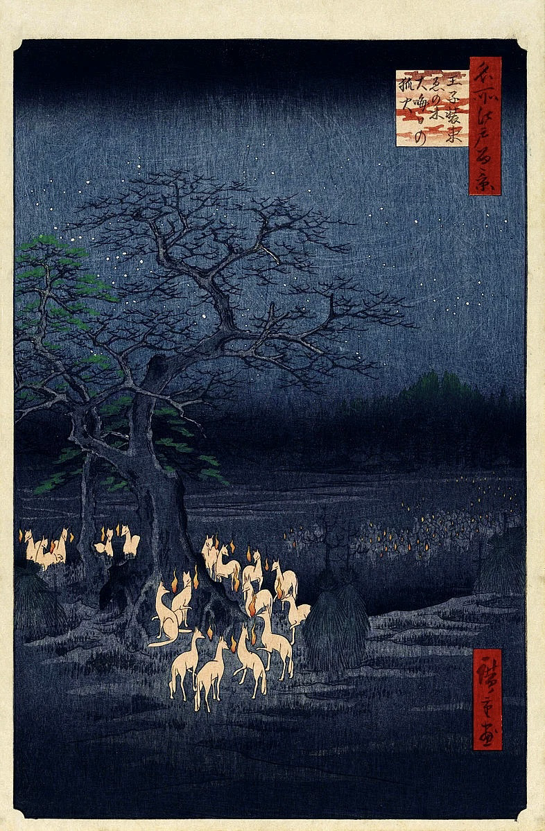 우: 19세기 일본 우키요에 작가의 여우불 장면