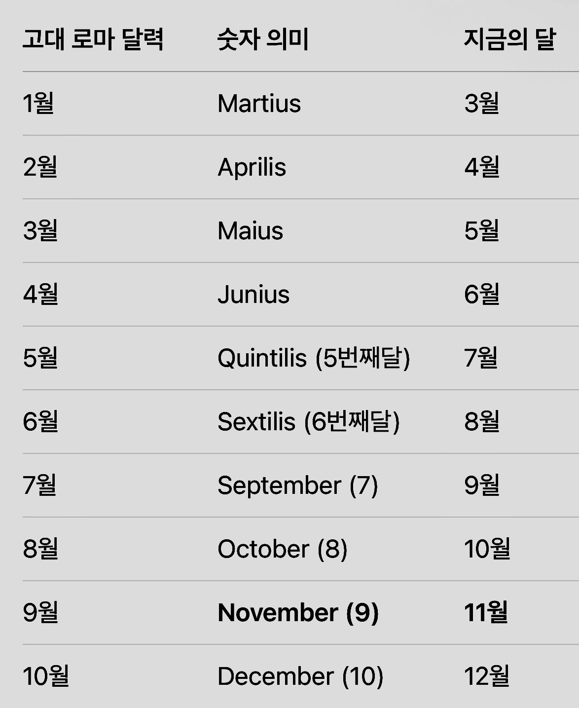 로마의 달력에서 November는 해의 아홉째 달이었습니다.