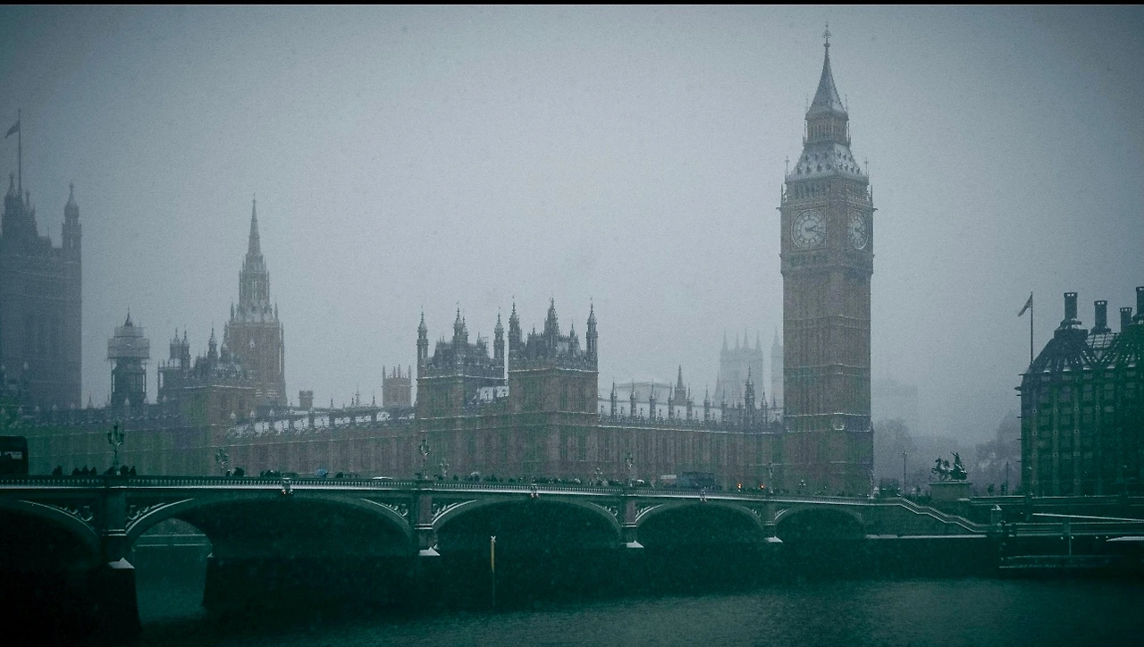 안개와 눈이 뒤섞인 런던의 겨울.