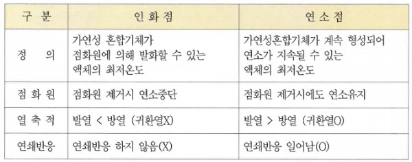 인화점, 연소점, 발화점까지 섭렵하셔야 합니다. 서브는 이 두가지면 됩니다.