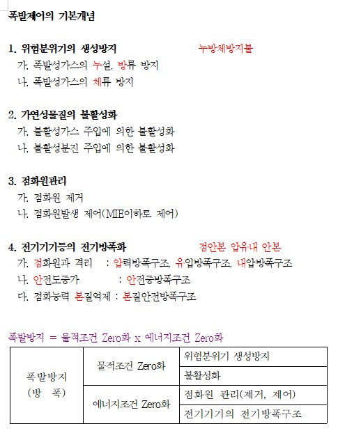 전기 스파크나 정전기 같은 점화원을 철저히 통제합니다.