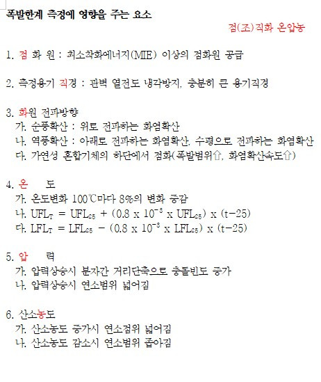 폭발한계 측정의 영향요인
