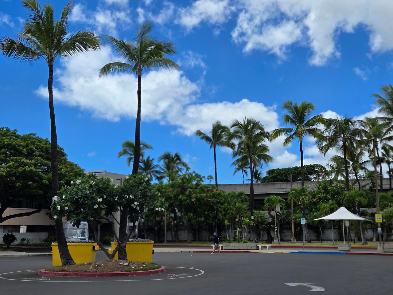 비행기 시간이 짧게 느껴지며 하와이 공항에 내려 입국 수속의 긴 줄에 서 있으니 다시 약간의 걱정이 앞선다. 앞사람들 입국 절차과정을 보니 질문도 많이 하고 열손가락 지문을 찍는 등 시간이 많이 걸리는 것 같다. 나도 경험상 숙소 이름과 체류날짜 그리고 방문 목적을 영어로 다시 한번 기억하며 까다롭게 보이는 공항직원을 피해 조금 온순한 공항 직원에게 가기를 바래본다. 다행히 원하던 공항직원이라 미소를 띠고 질문에 대답한다. 예상대로 숙소와 날짜를 물어본다. 그러다가 갑자기 한국말로 말을 건넨다. 웃음이 나와 한국 발음이 너무 정확하다고 칭찬해 주니 더 활짝 웃으며 여권을 주며 가라 한다. 나는 지문을 아직 안 찍었다고 하니 괜찮다고 가라 하는데 아마 2010년 미국 방문 시 지문이 등록되어 있었나 보다 짐작해 본다. 확실한 건 잘 모르겠다. 통역기능이 휴대폰에 있어도 영어를 못하면 입국 시 조금 불편할 수 있겠다는 생각이 든다.수화물을 찾고 낑낑대며 출국장을 나서는데 이번엔 큰 개 한 마리와 함께 서있는 경찰이 보인다. 짐 속에 조금 넣어둔 멸치가 개의 후각을 자극할까 긴장하며 지나간다. 다행히 개는 다른 사람의 트렁크에 눈이 가있다. 휴~ 너무 쉽게 통과되어 갑자기 긴장이 풀어지며 안도의 한숨과 함께 파란 하늘에 야자수가 활짝 펼쳐진 하와이 공기를 흠뻑 들여 마신다. 이번 여행처럼 긴장의 연속이었던 적은 없었던 것 같다.