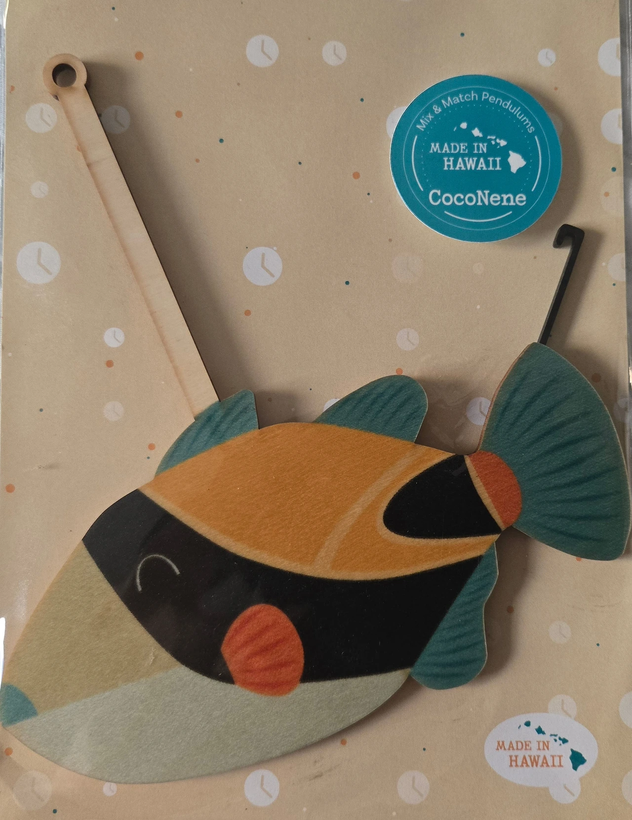 가게사장은 시계 추는 아무 벽시계나 잘 맞는다고 말하며 그 물고기는 하와이에서만 있는 하와이 지정 물고기로 후무후무누쿠누쿠아푸아야 라고 알려주신다 나는 따라 할 수 없는 긴 이름과 사장님 발음에 웃음이 나왔다. 색상이 예뻐 선택을 했지만 이 물고기가 세상에서 가장 긴 이름인지 처음 알았고 툭 튀어나온 입 모양이 돼지 입과 비슷하다는 사실도 알았다. 나중에 검색을 해보니 이 물고기는 하와이어로 돼지 물고기라 한다. 입도 두툼하게 생겼지만 울음소림도 돼지처럼 꿀꿀거린다고 생각하여 돼지 물고기라 한단다.또한 이 물고기는 겁이 많아서 작은 소리에도 빛의 속도로 도망간다고한다. 우연히 물고기 색상이 예뻐서 고른 시계추가 하와이 대표 물고기라고 설명하는 모습에 새삼 다시 들여다본다. 재미있는 이름이다. 막상 발음해 보니 같은 말이 반복되어 외우기 쉬었다. 후무후무 누쿠누쿠 아푸아야를 다시 한번 소리 내 본다.