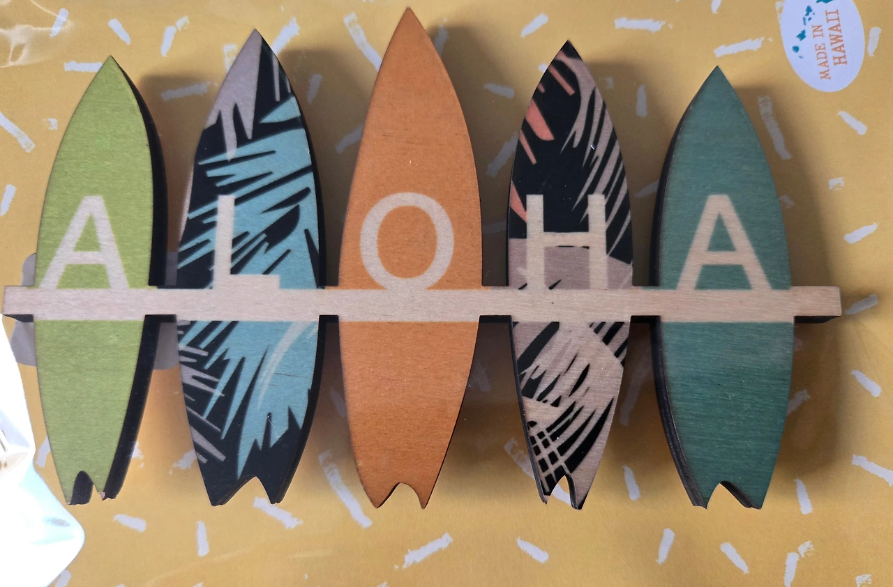 하와이에서 무지개가 자주 뜬다고 무지개섬이라 불려 무지개도 눈에 띠고 훌라춤의 여자와 남자등 다양하게 보인다. 좋은 아이디어 상품인 것 같다. 그러나 한 개가 거의 12달러여서 몇 개 넣지 않아도 10만 원이 훌쩍 넘을 것 같다. 아쉬워서 시계추 물고기와 알로하 보트 2개만 구입했다.돌아오는 내내 물고기를 생각하니 웃음이 나오며 하와이 물고기를 한 마리 잡아가는 느낌이다.