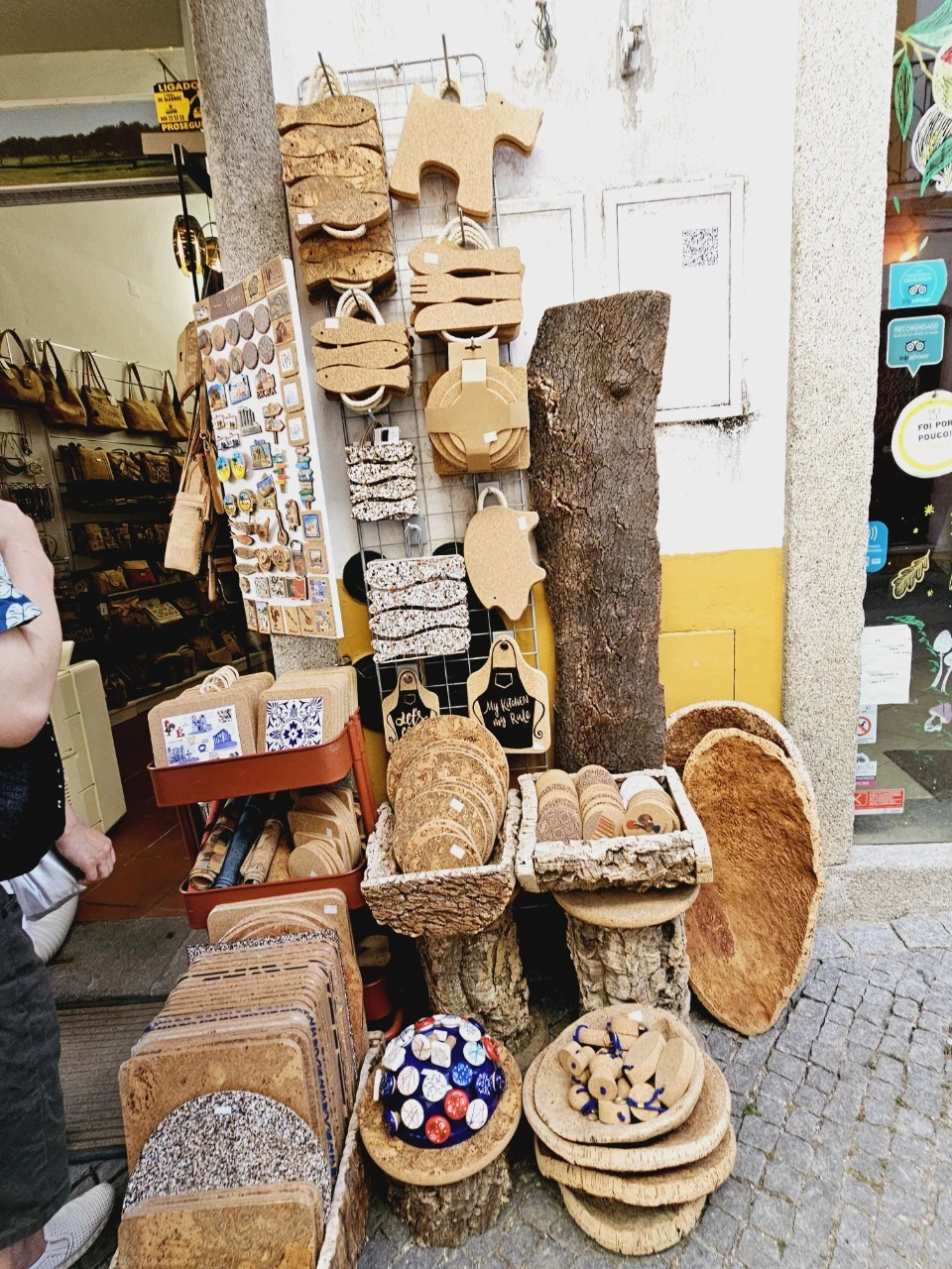 다시 골목길에 들어서니 기념품을 파는 예쁜 골목이 펼쳐진다. 이곳에서 에보라에서 유명한 코르크로 만든 제품들이 눈길이 간다. 병마개로만 알고 있던 코르크나무가 모자, 가방, 신발 등 다양한 형태로 상품이 되어 진열되어 있었다. 포르투갈은 전 세계 코르크 생산량의 약 50%를 차지하는데 그중 에보라 지역은 코르크나무 숲이 널리 퍼져 있어 코르크로 유명하다. 코르크 제품이 방수도 되고 가볍다는 말에 코르크재질의 가방을 슬며시 흥정해 본다.
