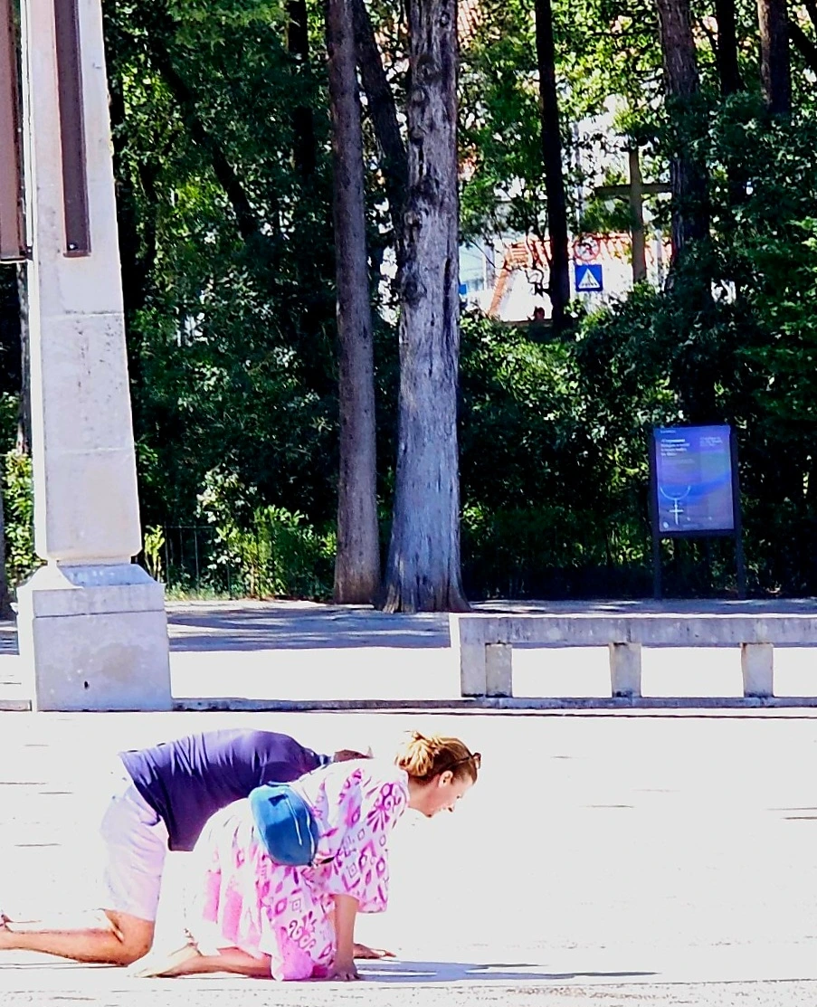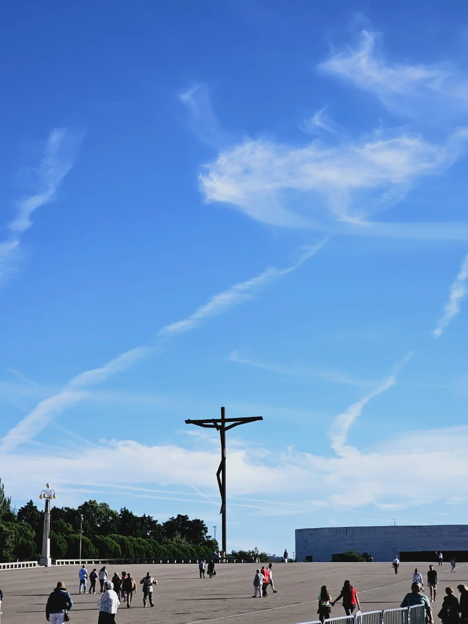 광장을 걸어가니 엄청난 높이의 가느다란 십자가에 가냘픈 예수님 동상이 하늘의 구름사이로 빛을 발하며 세워져 있다. 메주고리예 예수님 동상을 본 나는 너무 대조적인 예수님 상에 약간 충격을 받았다. 거대한 '치유의 예수상'앞에서 예수님 무릎 사이 성수를 만지며 치유를 기도하는 신도들의 모습을 본 나는, 가느다란 십자가에 매달린 대조적인 예수님을 보고 잠시 당황스러웠다. 똑같이 야외인데 너무 느낌이 달라서였을 것이다.