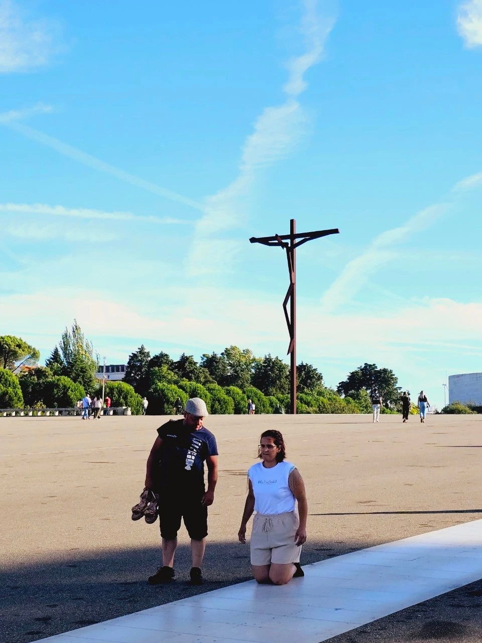 성당으로 가는 광장에서 한 번도 보지 못한 광경이 눈에 들어온다. 무릎을 꿇고 걸어가며 자신의 죄에 대한 용서를 받기 위해 고통을 감수하는 많은 사람들이 인상적이었다. 정해진 길이 아닌데도 기도와 참회를 하며 곳곳에서 무릎을 꿇고 걷는 신자들이 눈에 띈다. 성당 앞에는 예수님이 양팔을 벌려 어서 오라고 반기신다.