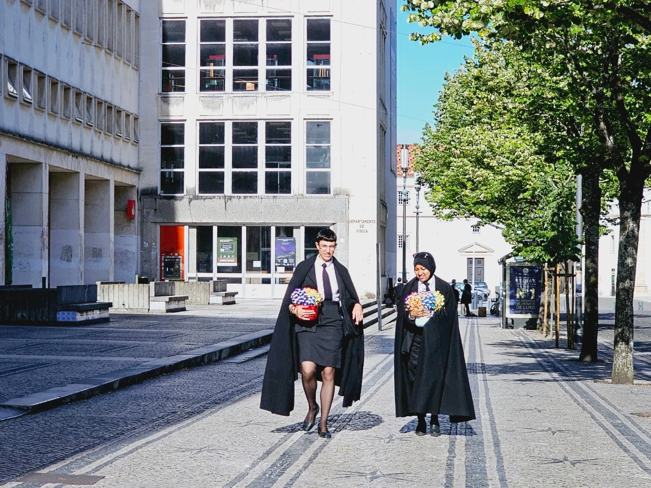 역사가 오래된 대학교 자체가 관광객들이 꼭 봐야 할 곳으로 정해졌다는 것이 흥미로웠다. 버스에 내리자마자 망토를 두른 2명의 대학생들이 기념품 볼펜을 들고 마중 나온다. 코임브라 대학은 대대로 이어지는 교복의 전통이 남자는 검은 재킷에 바지, 여자는 흰 셔츠에 검정스커트를 기준으로 하고 검은 넥타이와 망토를 두르면 된다. 해리포터의 교복이 코임브라대학의 교복에서 영감을 받아 호그와트 마법학교 의상을 만들었다고 한다. 마법의 학교에서 걸어 나오는 듯 검은 망토를 입은 대학생 둘은 끝이 학사모가 달린 볼펜을 보여주었다. 예쁜 볼펜들을 구입하며 그들과 함께 사진도 찍어본다.